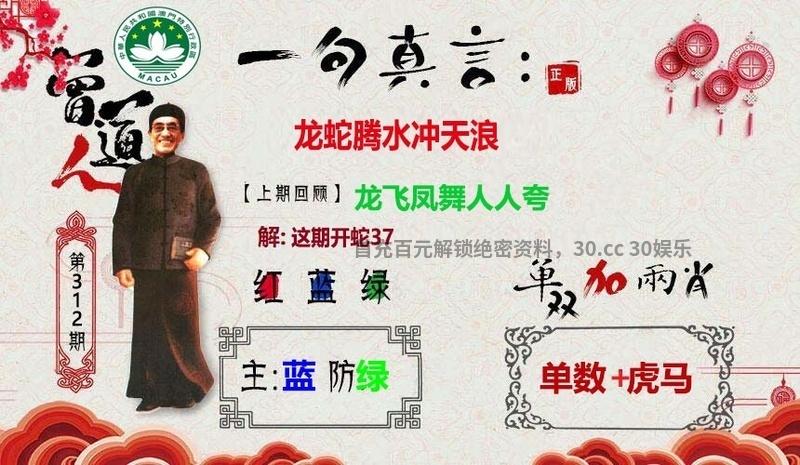 312期【解一句真言】:龙蛇腾水冲天浪,冲天浪,解天肖猪龙兔牛猴马 王牌看好生肖:猪龙兔牛猴马 王牌看好波色:蓝波+绿波 |